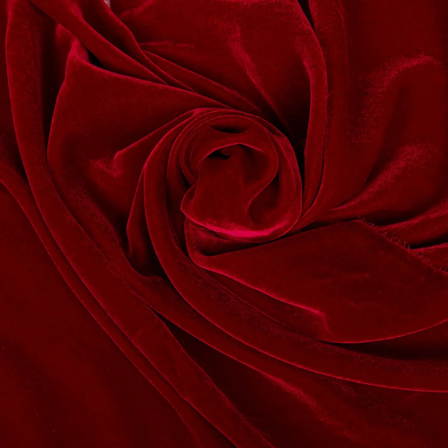 Few fabrics caress our senses with such intensity, telling us stories of opulent interiors, regal like Velvet, with its bright, warm tones has this rare gift, appreciated for centuries by stylists, artists, showmen, and fashion enthusiasts from all over the world. Our "Regale" selection is a panné velvet in Silk (30%), Viscose (70%), in 10 color variations. This process gives the fabric an uneven, iridescent appearance, with suggestive reflections of light, the hand is fluid, creating an enveloping, sensual sensation. This fabric lends itself to the creation of a variety of garments from the most classic to the most whimsical... so everyone can give vent to their imagination. Height: 140 cm. Weight: 230 g. This is one of our ongoing items and is therefore ALWAYS available in metre lengths, also removed. Would you like to order a color card and have a sample of all the available colors? href="https://www.toscaitalianfabrics.com/campioni-cartella-colori-campionatura-articoli-continuativi-shop-online-tessuti-da-abbigliamento-stoffe-Tencel-ecovero-drap-misto-Cashmere.html" target="_blank">Click here!