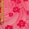 14 - EASTERN ROSES: Tessuto in cotone e viscosa elasticizzato con rose e righe stampate in bianco su fondo rosso.