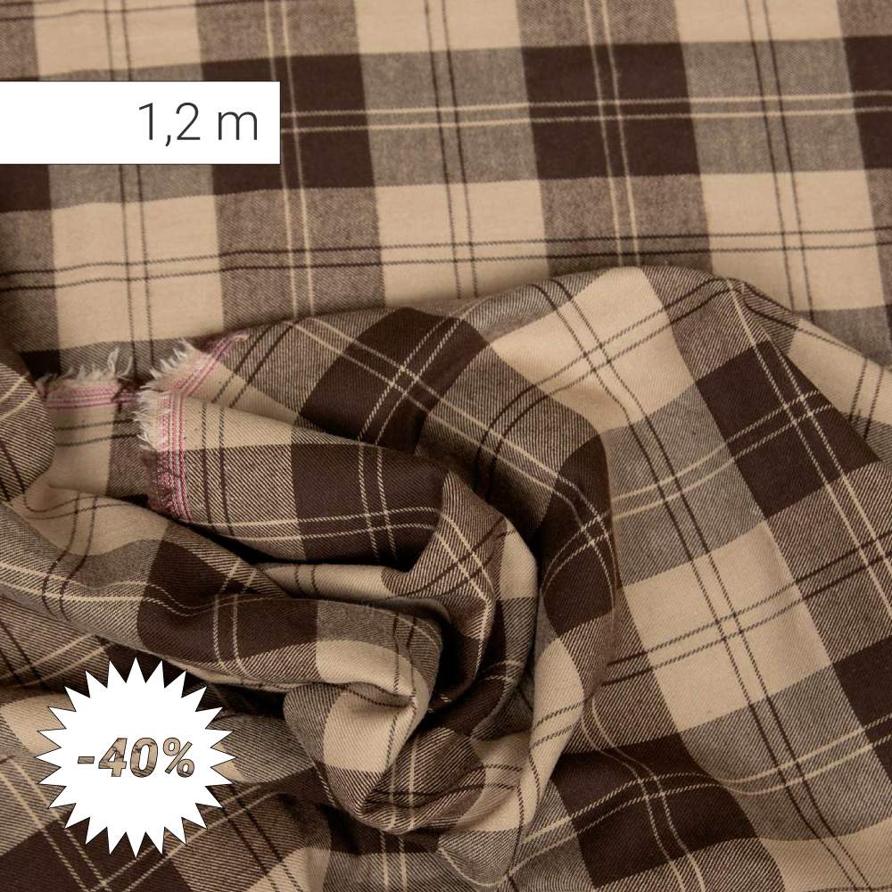 100% warm flannel cotton fabric with a check pattern in brown tones.